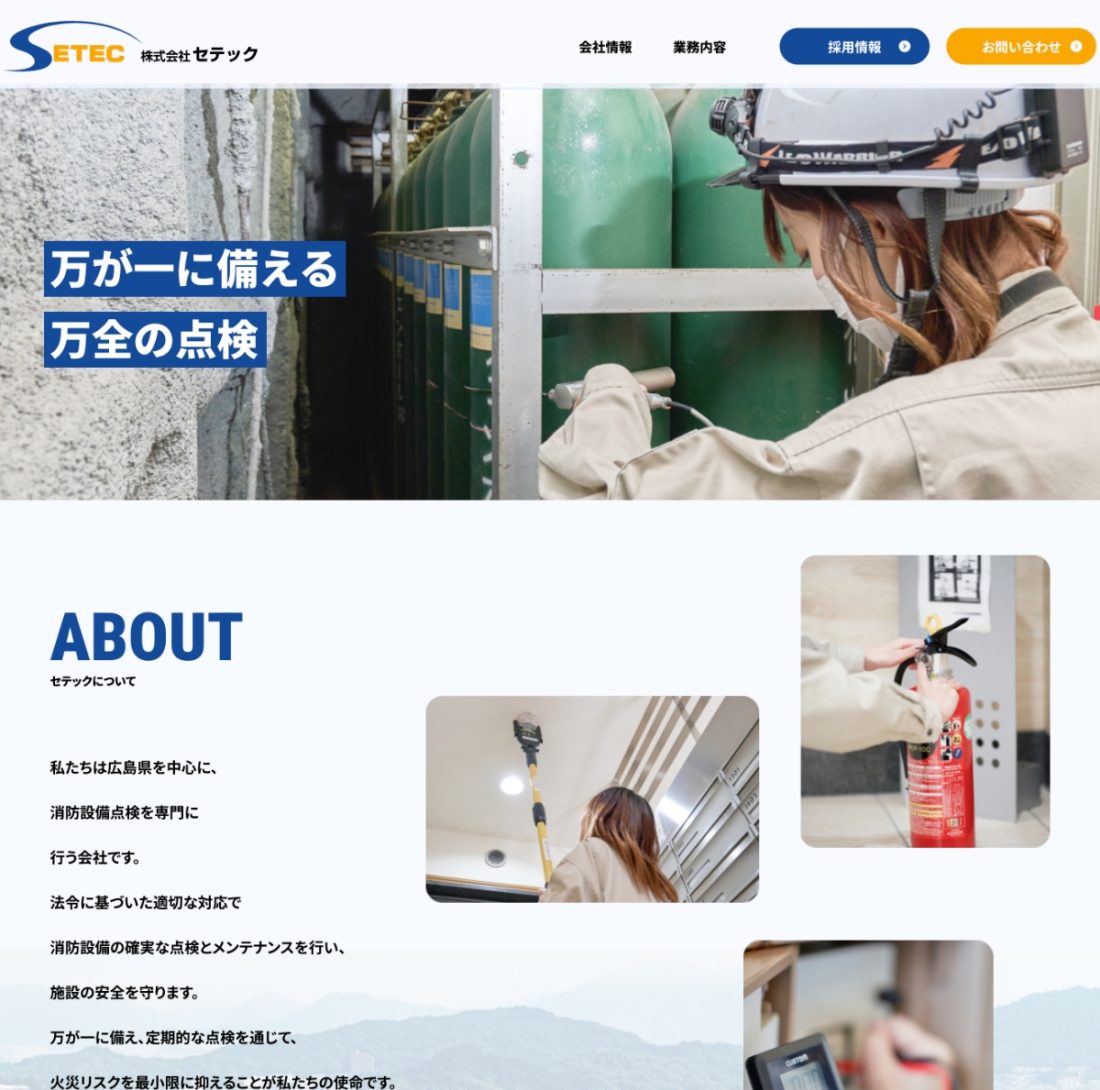 広島市で消防設備の設置、点検を行なわれている株式会社セテック様のWebサイトを制作しました。